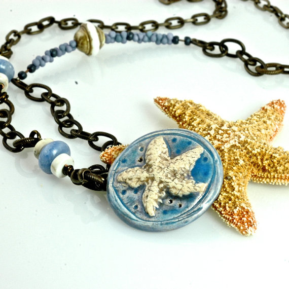 | {Soothing beach inspired necklace with a Spirited Earth starfish pendant from Cherrie Fick of En La Lumiere on Etsy} |
