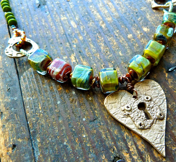 2. Give it a Name: Adding a moniker that is more than just “labradorite and pearl necklace” (which is totally fine if you do that) to something that evokes a feeling, a place, a mysterious aura can add an artful sense to your designs. (This is just my opinion, and I know that there will be many who disagree with me!) Not to say that a very literal name isn’t a good thing – I know that it helps for people searching for just that right “labradorite and pearl necklace” online – but I personally find it a bit boring. Miss Lorelei is a whiz at picking intriguing names for her pieces that help people feel a connection to them other than just because they have a certain color or style. I would say the same can apply to art beads. I love knowing that the art beads I buy are created from an inspiration, like a painting or a walk in the woods, rather than just seeing “brown and green ceramic beads.” Same is true of finished jewelry. My clients tell me that it is the story that I have brought to a piece that helps them connect, and a name is one way to do that.