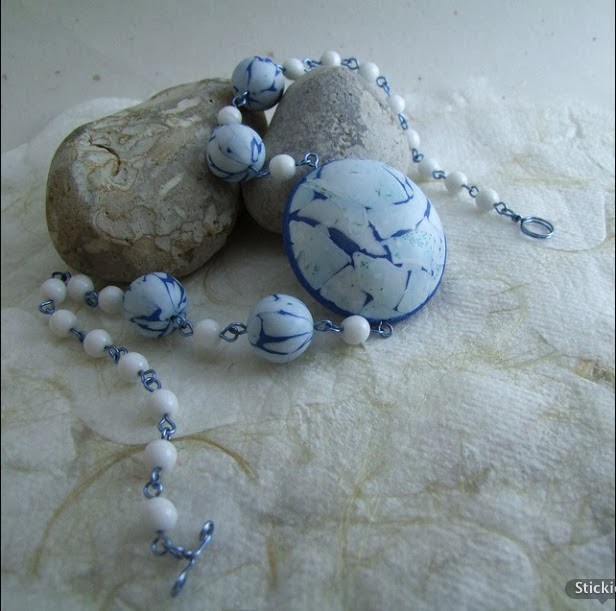Next up, Fulgorine shared her ‘Arctic Necklace‘, complete with her own handmade polymer beads. The pendant reminds me of shattered ice…..beautiful!