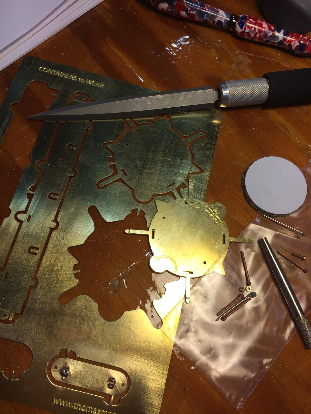 I signed up for his Containers To Wear course. This is a concept that he has pioneered and it really is quite brilliant. He has engineered a sort of shadow-box container that is chemically etched in an industrial process that makes a sort of ‘punch out’ template of the three pieces needed to construct this magical box.