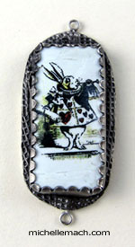 Michelle Mach writes how she has yet to commit to beadmaking but has found herself taking class after class in pmc. Her latest class was in image transfer shown below.