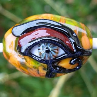 Think you’re hearing things? Well, Holly doesn’t listen to the voices in her head, she just ignores them and creates interesting glass eye beads (shown below).
