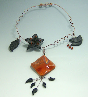 So when perusing all the lovely submissions, I tried to see them as what they were; beautiful pieces of hand crafted jewelry inspired by a striking piece of art. Mary Ellen’s piece jumped out at me from the computer screen. It had color, movement, balance and contrast. Most of all it brought a touch of feminine beauty to an abstract, sharply angled, modern art sculpture. I love what you did here, Mary Ellen! Thank you for helping me see Calder’s piece in a new light!”
