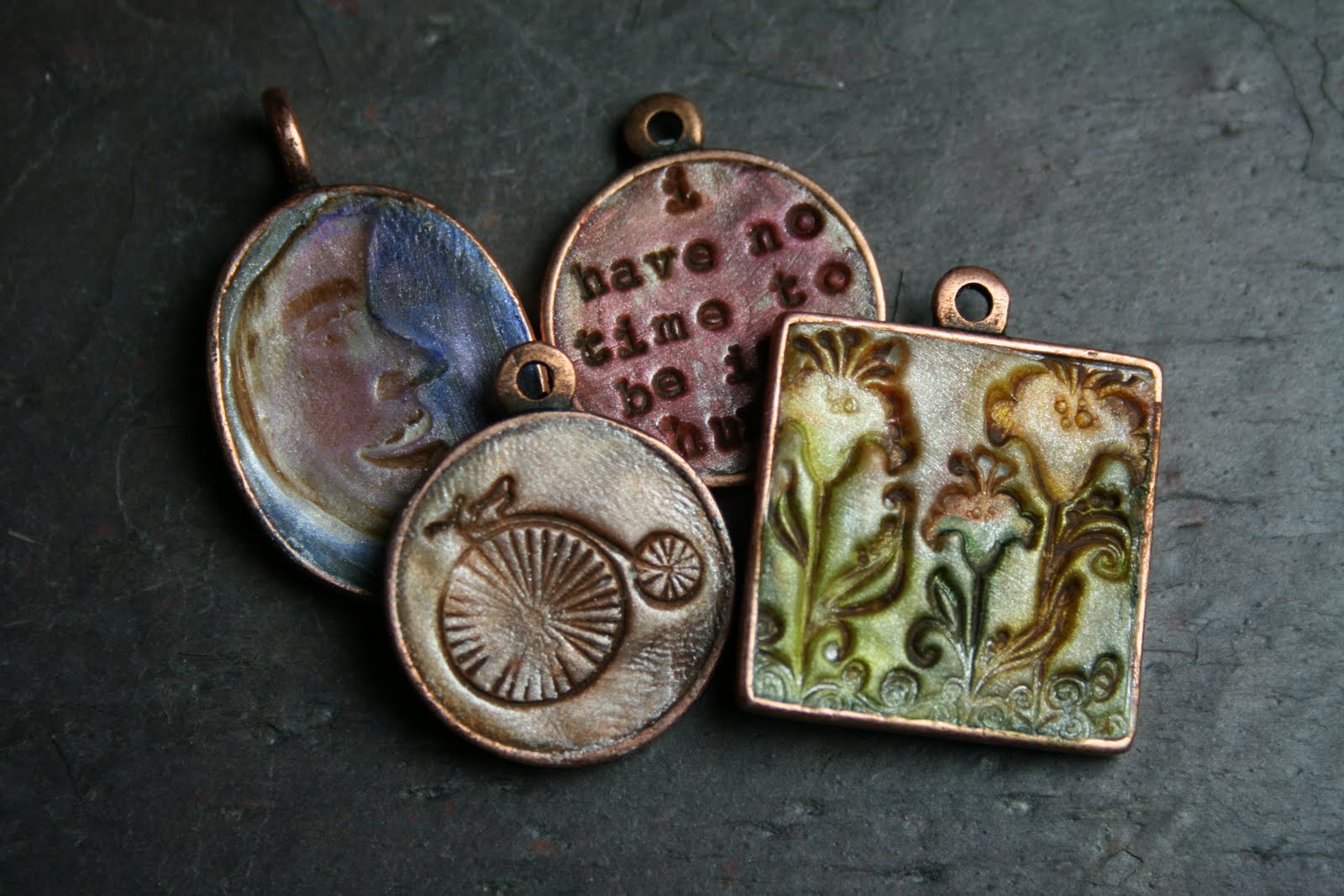 Erin Prais-Hintz of Tesori Trovati (treasures found) is an Artisan Jewelry Designer. She has a love of putting together found objects with artisan made items. Each piece she creates is unique and imaginative. Erin is working with polymer clay creating pendants.