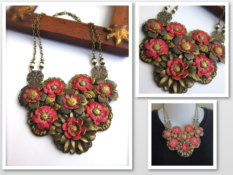 Mary Ellen of Bee Tree by m.e. was a bit stumped by the decidedly warm autumn palette for this month’s painting inspiration. But not for long! She focused on the fact that spring is for lovers with a romantic necklace that will guarantee some kisses under the cherry blossoms!