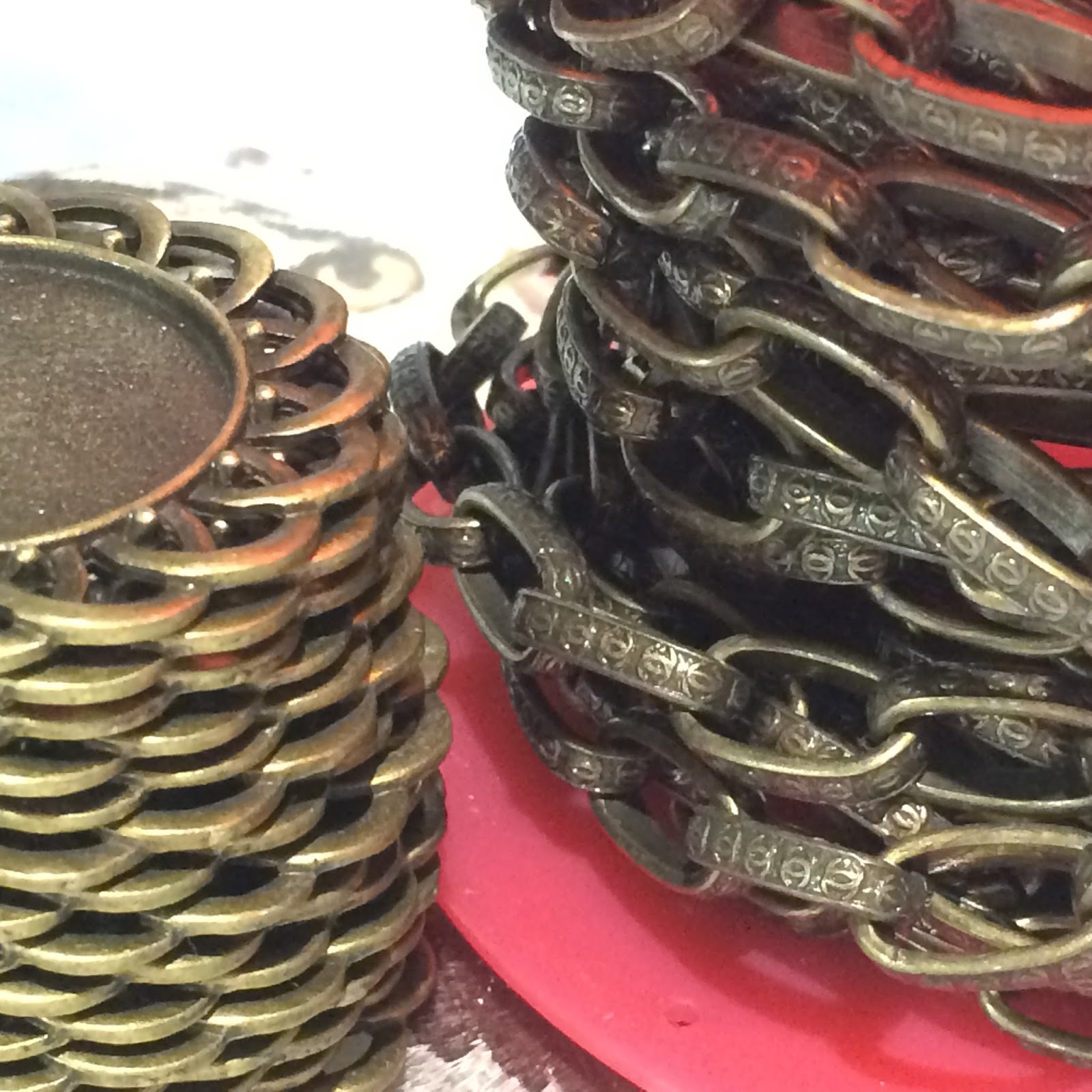 | Bezels waiting to be filled and chunky chain… a substitution from the one in the magazine that I couldn’t find! |