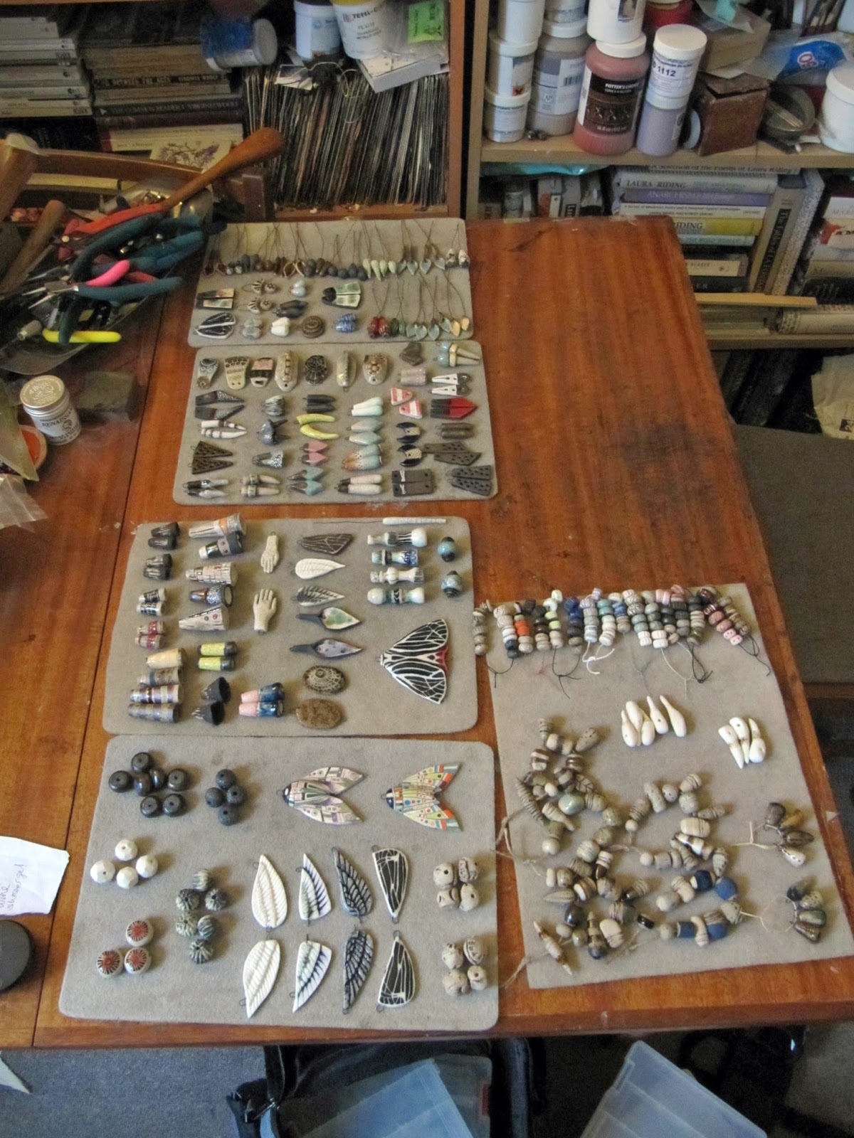 I would have got going on the metalwork earlier in the month but there was other stuff to do in the studio, like glazing a big batch of beads.