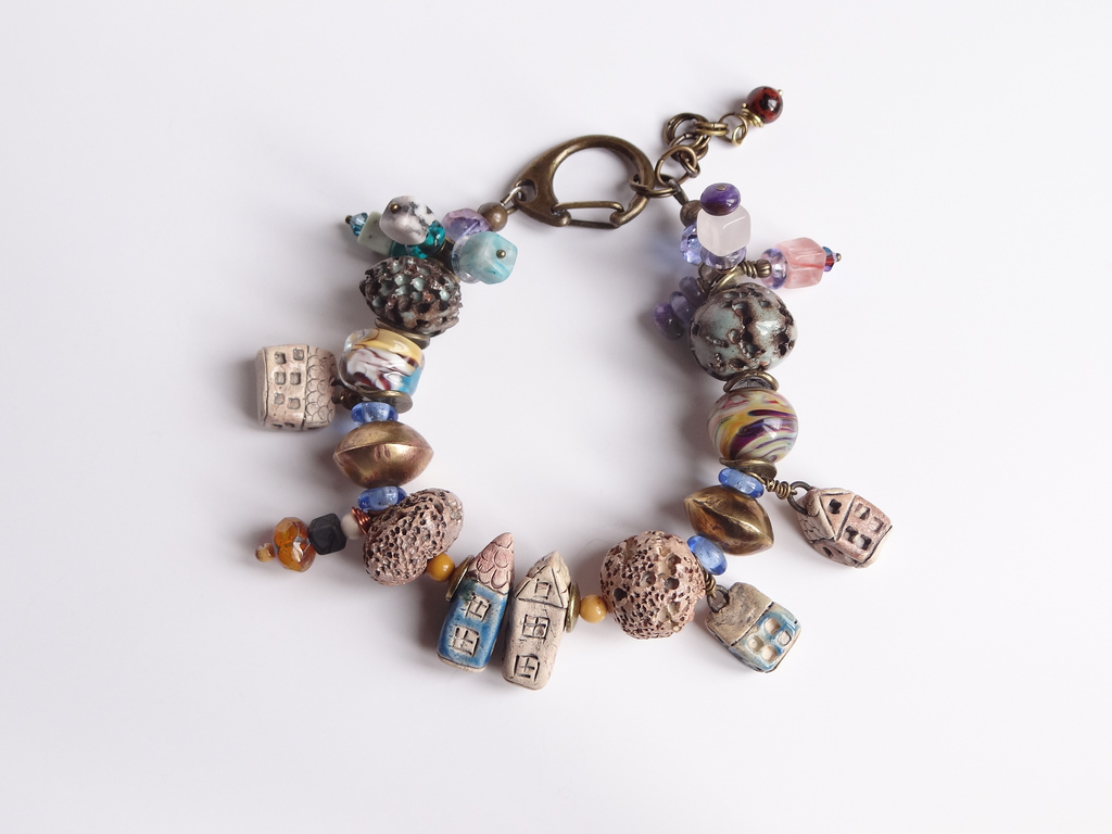 When I do have the rare occasion to go on vacation, I like to look for trinkets to remember my time well spent. This bracelet looks like a collection of all the beach houses you might have stayed in over a length of time, like a festive little neighborhood block party for your wrist! Check it out at Ahowin.