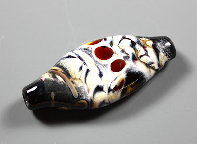 Lyn is a glass beadmaker who primarily sells her gallery quality jewelry. Last year she started branching out selling her beads online, which are exquisite! I could see her beads matched up with layers of gunmetal chain, onyx or labradorite or crystals in black dorado and fiery magma.