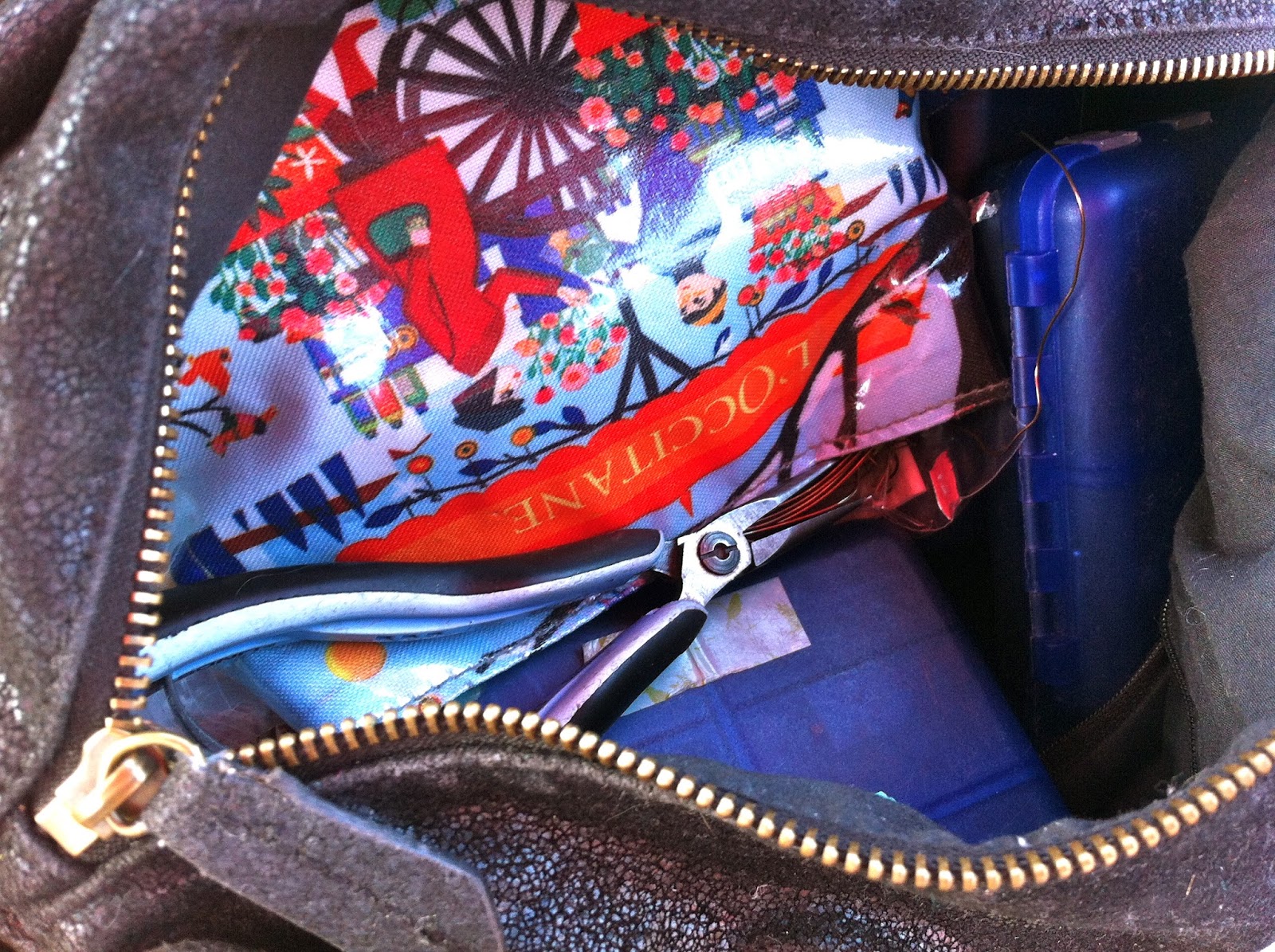 I have seven of those blue boxes, each one labelled ‘copper’, ‘brass’, ‘sterling’ etc. I even have one labelled ‘MissFickleMedia and PatinaQueen’! My favourite little tub. The vinyl bag is full of antique copper and brass wire, and those pliers….yes, I am definitely guilty of abuse to pliers! They have their own little bag, but I am often guilty of chucking them in with everything else.