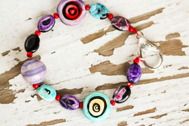 I am a fan of fiber arts, mostly because it involves skills that I don’t possess. Miss Jen crafted not one, but two soft cuff bracelets as the perfect backdrop for some pretty art beads. Read more on her blog, Purple Fish Studio.