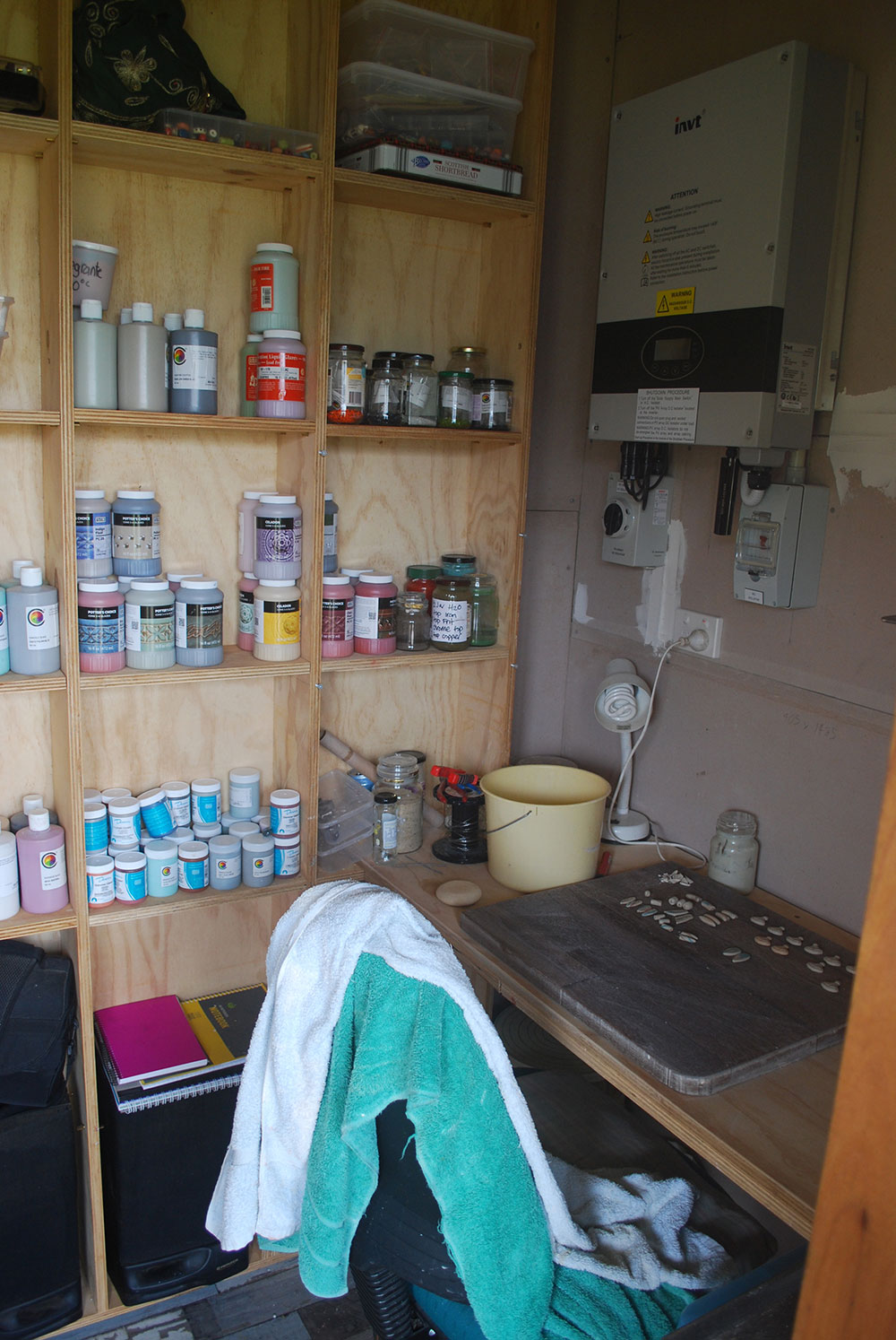 Melissa: I have one word to describe my workspace….tiny! It is a meagre 1.5 metres x 1.5 metres, just big enough to make beads and small sculptures. I am planning for a bigger workshop in the future. This will allow me to mix glazes, do some throwing (on the wheel), plaster work, teaching etc.