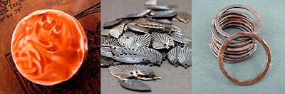 Doesn’t Lynn’s Zephyr bead in Paprika just make you want to book a trip to Vermont to see the leaves change colors? I’d use these Art Deco looking leaf charms from RockStash with Hammered copper rings from Prolifique to create a necklace with lots of linked pieces using copper wire.