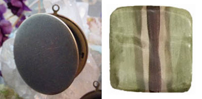 Let your art beads and locket mirror one another for visual impact. The simple leafy pattern on this Floral Embossed Locket from FabBeads would look fall fresh paired with Creative Impression in Clay’s Leaf Button in fern. Remember Tari can create her buttons in a variety of configurations for jewelry designers, including a hole at the top and bottom or metal links. ExpeditionD’s Zephyr Bronze Squares have a sense of history and narrative, so they would be perfectly paired with a bronze book locket from WanWanCorner.